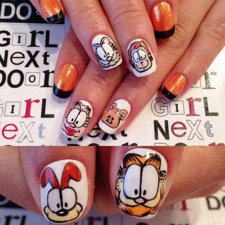 9) Garfield and friends look so cute in these Garfield nails.