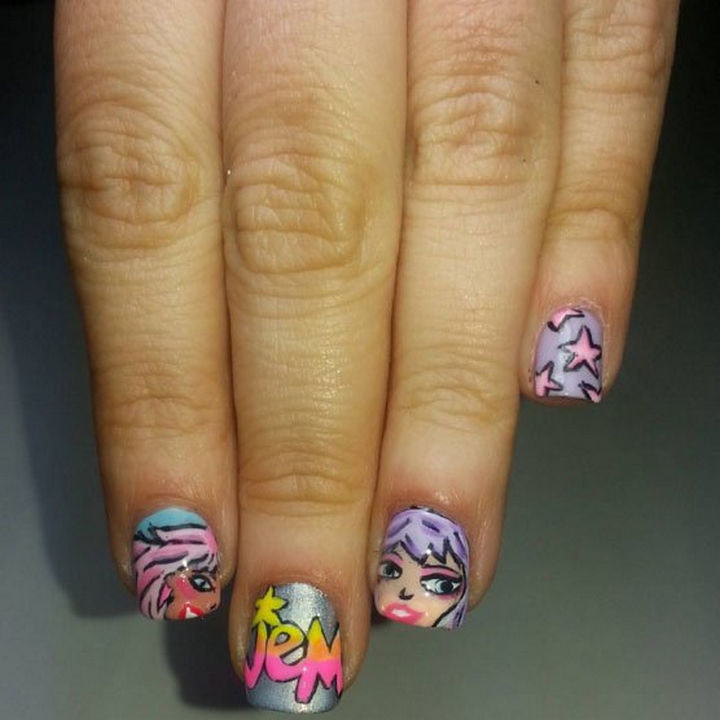 11) Be truly outrageous like Jem and The Holograms with these cute Jem nails!