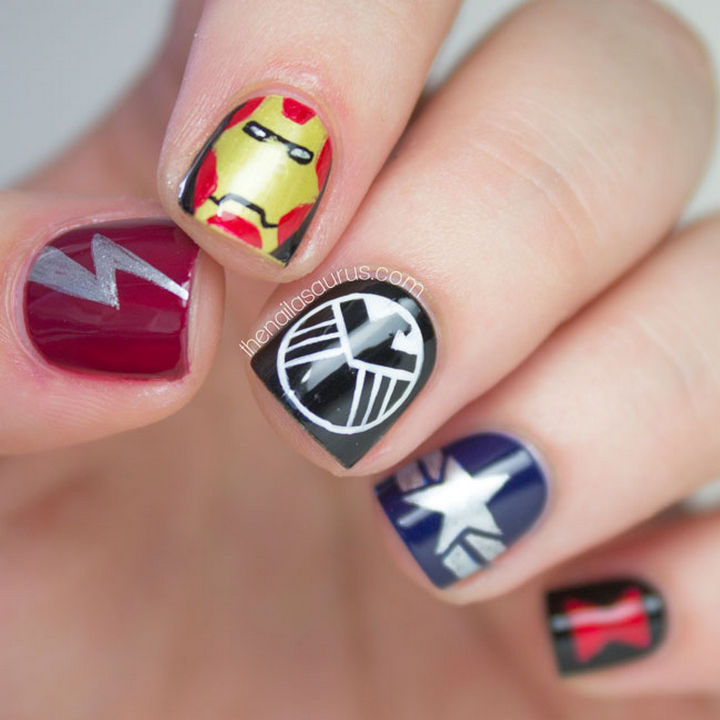 12) If you’re a fan of the Marvel Universe, Marvel manicures like this one featuring The Avengers are totally epic.