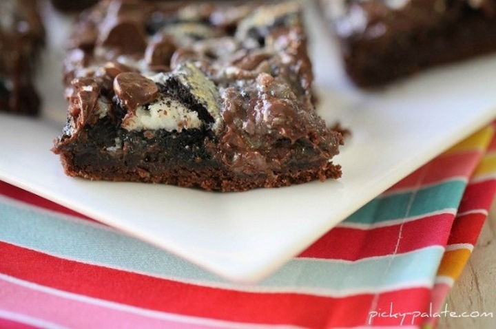 These chocolate cake bars look sooooo good. Try this recipe for Gooey Cookies and Cream Double Chocolate Cake Bars.