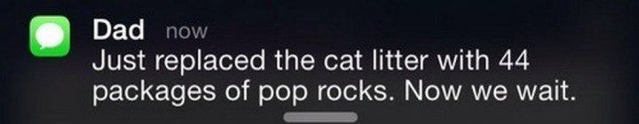 “Just replaced the cat litter with 44 packages of pop rocks. Now we wait.”