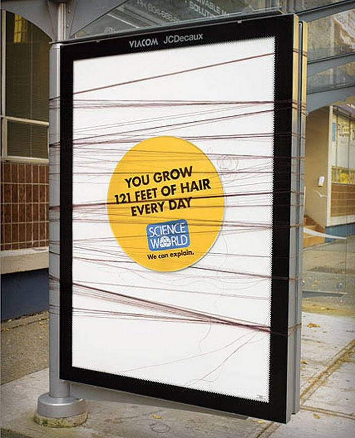 Science World at TELUS World of Science in British Columbia, Canada is a charitable non-profit organization and fantastic science center. Science is about engaging the mind and they’re renowned for their inventive ads produced by ad agency Rethink that provide you with science billboards with interesting facts that might lead you to research it even more and thus, learn more about science.