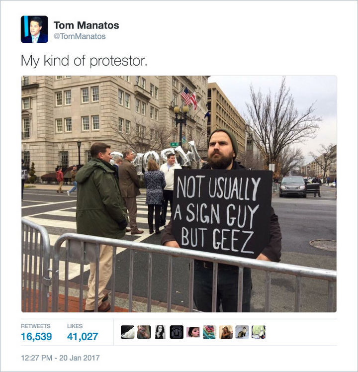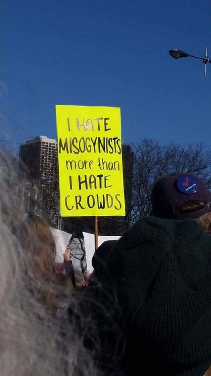 16) 2017 Women’s March: “Not usually a sign guy but geez.”