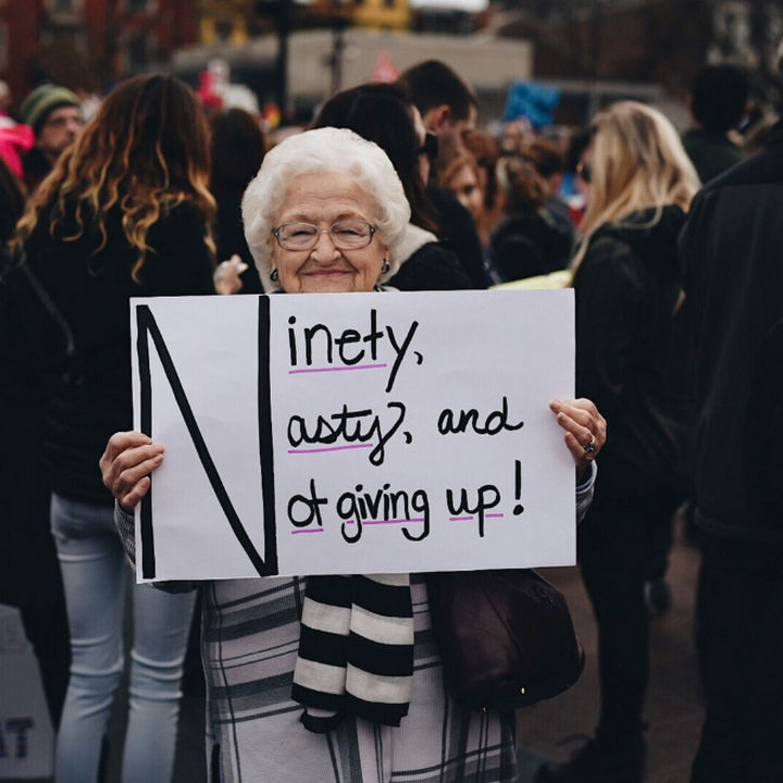 10) 2017 Women’s March Signs: “Ninety, nasty, and not giving up”