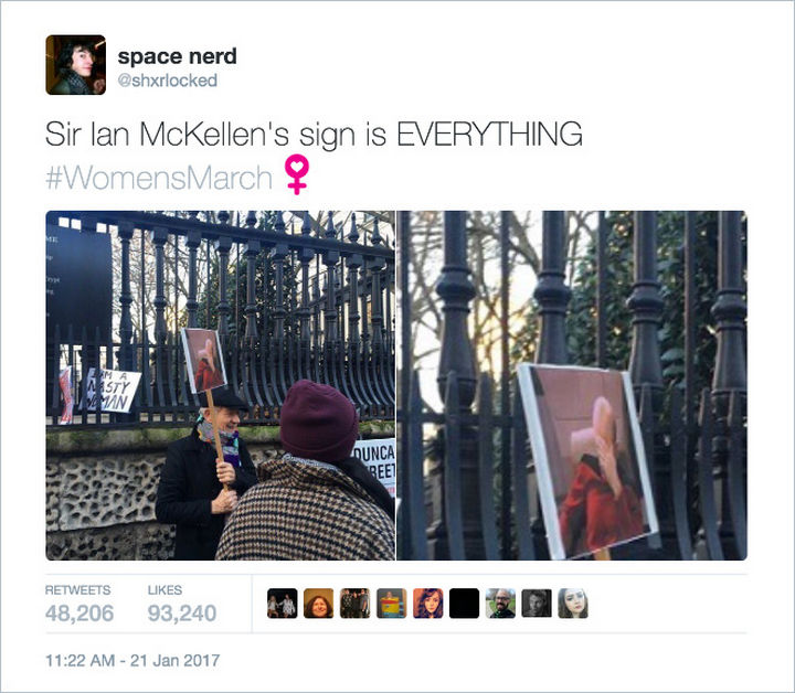 14) “Sir Ian McKellen’s 2017 Women’s March sign is EVERYTHING.”