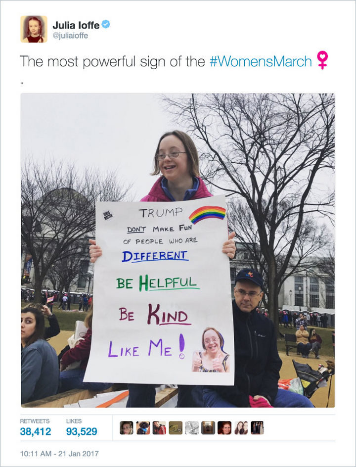 16) 2017 Women’s March: “Not usually a sign guy but geez.”