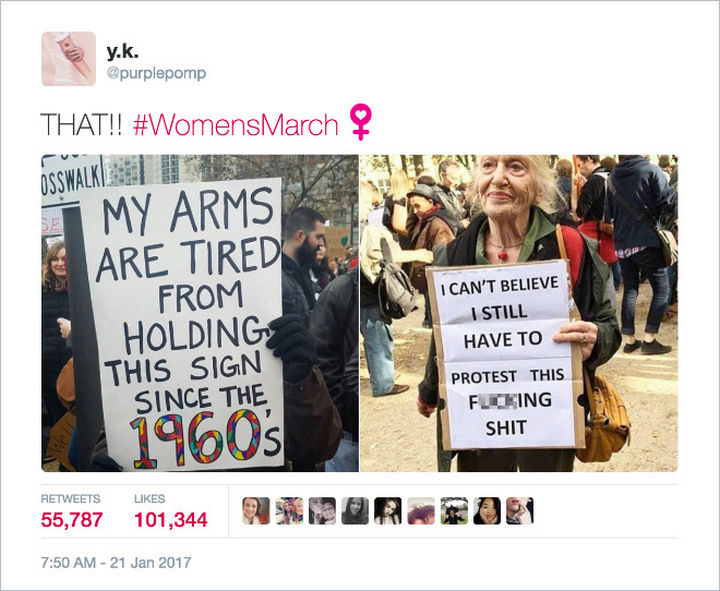 6) 2017 Women’s March Signs: “Old white dudes care too.”