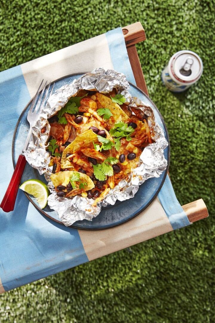Foil pack meals are the best when cooking in the outdoors. Mix everything together, toss it on a campfire grate, and enjoy no-fuss cooking at its best. These loaded nachos are incredibly delicious and perfect for lunch or dinner. Get the recipe.