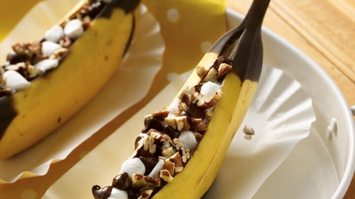 What came first? The banana boat or smores? Regardless, both are delicious treats featuring chocolate and marshmallows. The great thing about banana boats is that you can let your creative side go wild and add a variety of toppings like cereal, nuts, and even other fruit like strawberries or cherries. Get the recipe.