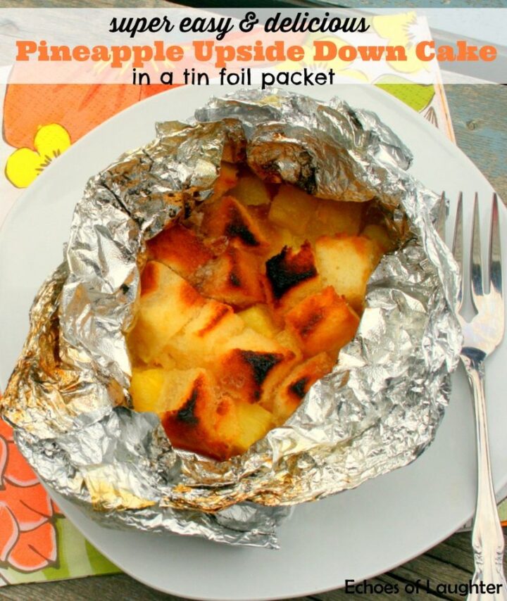 A Pineapple upside-down cake is generally not what you think of when dreaming up campfire desserts but it works! This recipe combines fresh or canned pineapples mixed with chunks of your favorite poundcake simmering in a luscious butter and brown sugar syrup. Get the recipe.