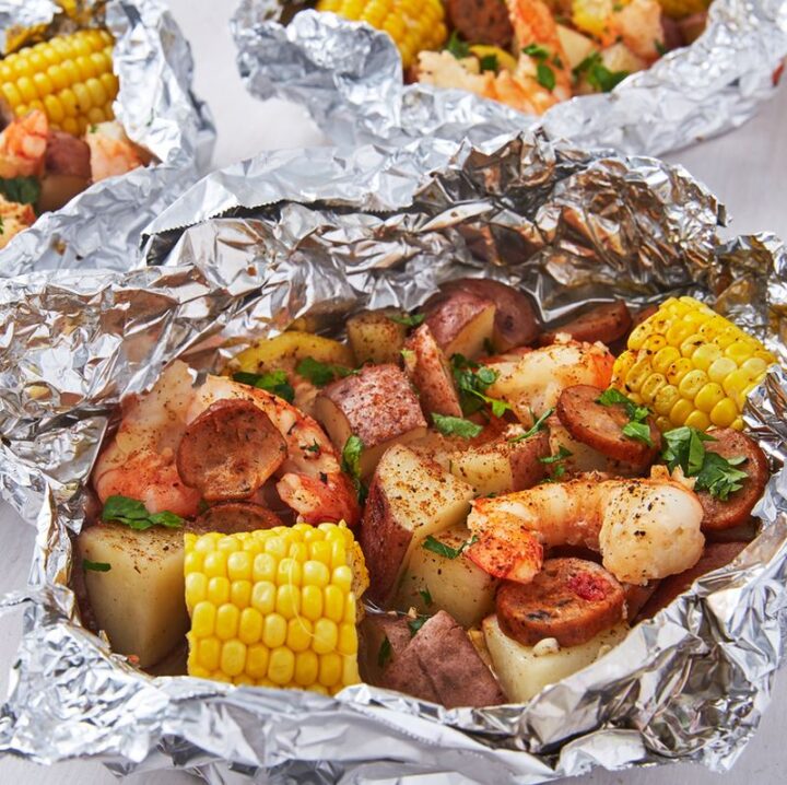 You may notice this list doesn’t include fish recipes and that’s only because a campfire fish fry is generally the norm. But if you’re in the mood for other seafood like shrimp, these grilled shrimp foil packets are just what you need. Get the recipe.