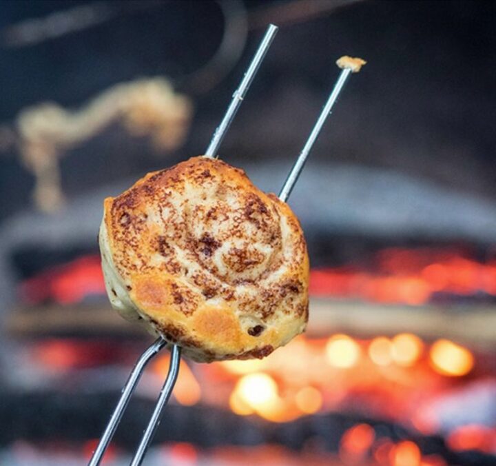 Break the rules of typical sweet campfire staples like marshmallows and smores and give campfire toasted cinnamon rolls a try! Start with packaged cinnamon rolls and make sure to have a container of cream cheese glaze for dipping. Get the recipe.