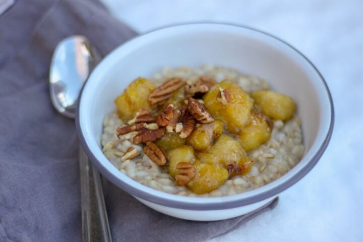 Oatmeal is a breakfast staple and adding fruit brings it up to a whole new level. Caramelized bananas add delicious sweetness and make this a satisfying camping breakfast perfect for those colder mornings. Get the recipe.
