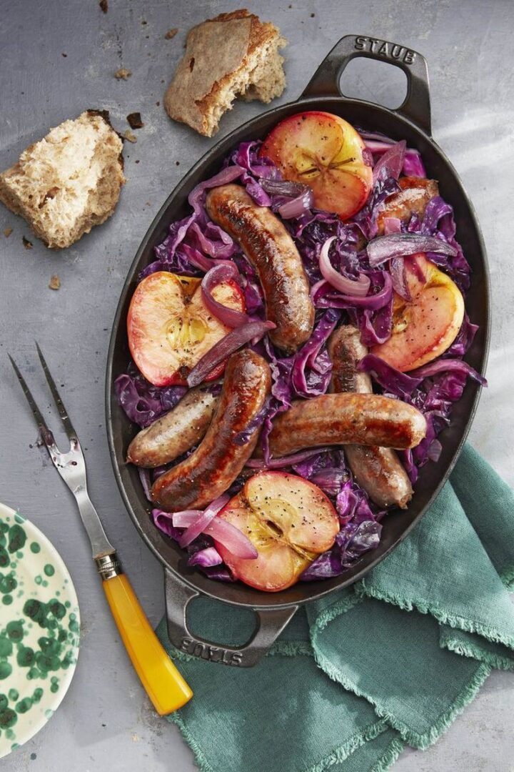 19) Seared Sausage with Cabbage and Pink Lady Apples