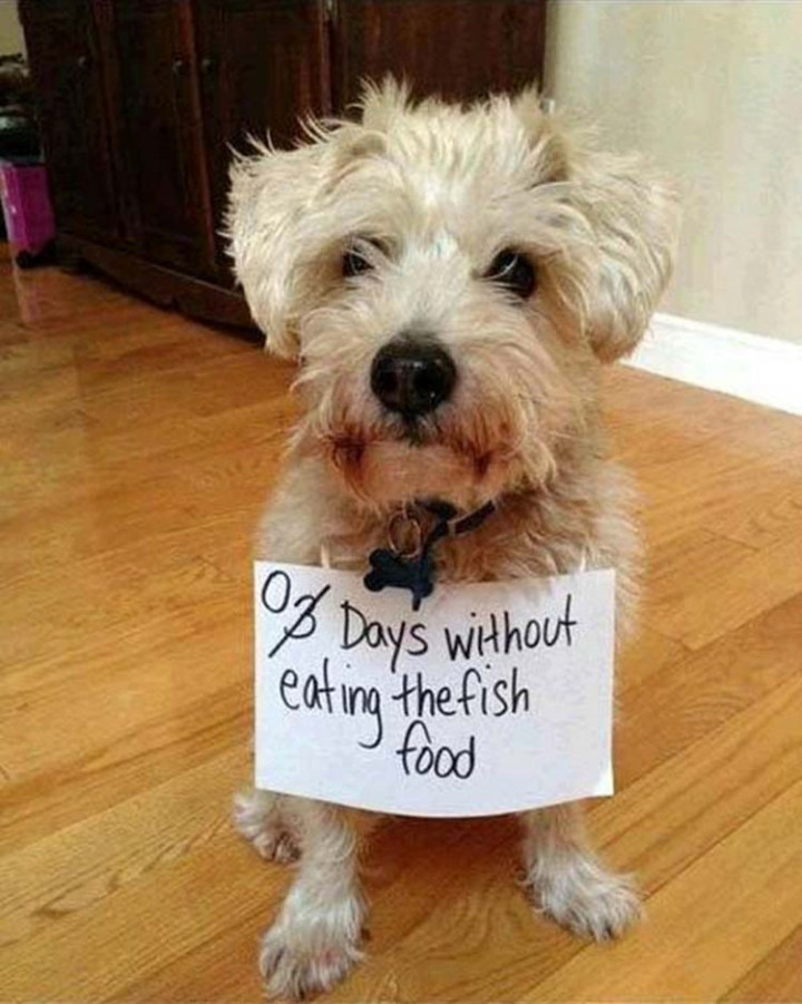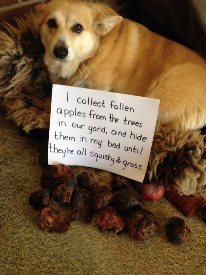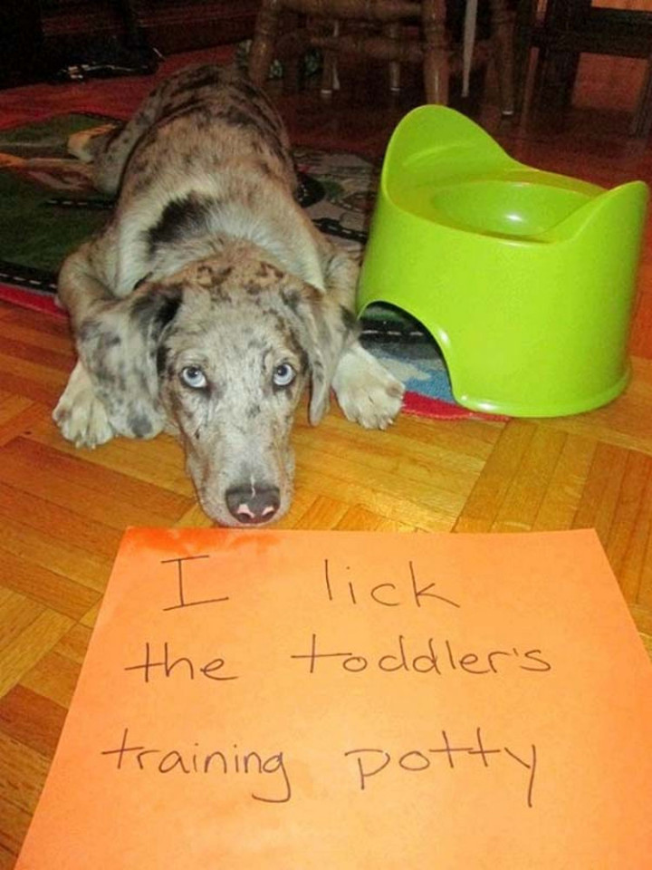 13) Poor little fella…dog shaming.