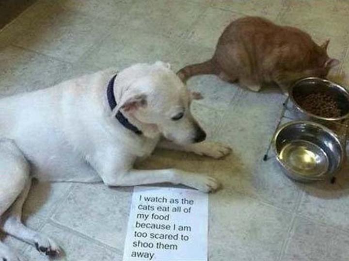 17) Bullied by the cat.