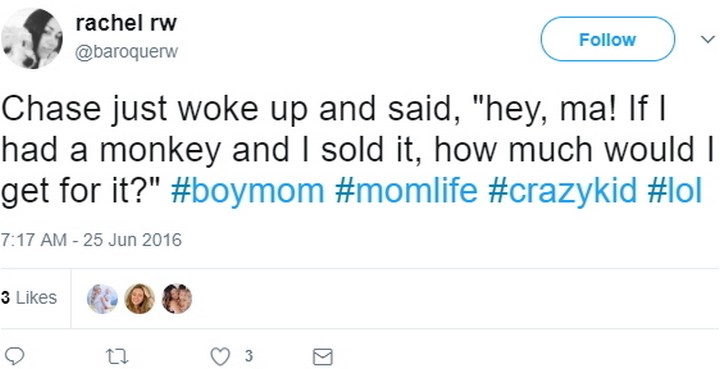 “Chase just woke up and said, ‘Hey, ma! If I had a monkey and I sold it, how much would I get for it?'”