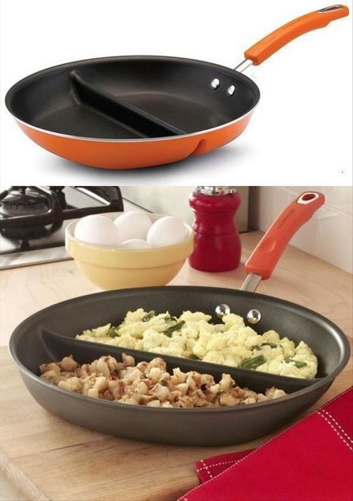Cook two meals at once with Rachael Ray’s Porcelain Enamel II Nonstick 12-inch Divided Skillet.