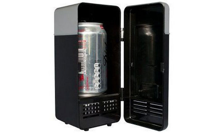 Keep cans cold in your cubicle or home office with a Mini USB-Powered Fridge Cooler.