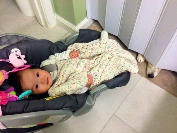 10) This corgi isn’t allowed in the washroom but still likes to stay as close to the baby as possible.