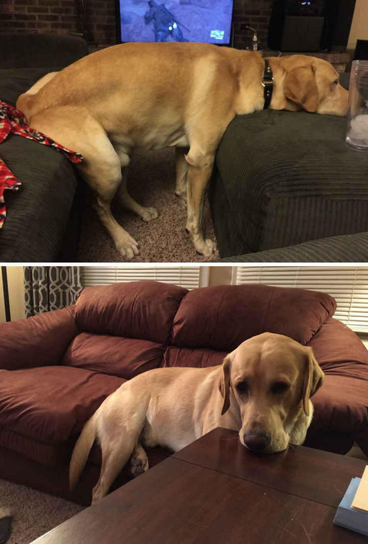 12) Her boxer isn’t allowed on the couch but it doesn’t count if he has one paw on the floor does it?