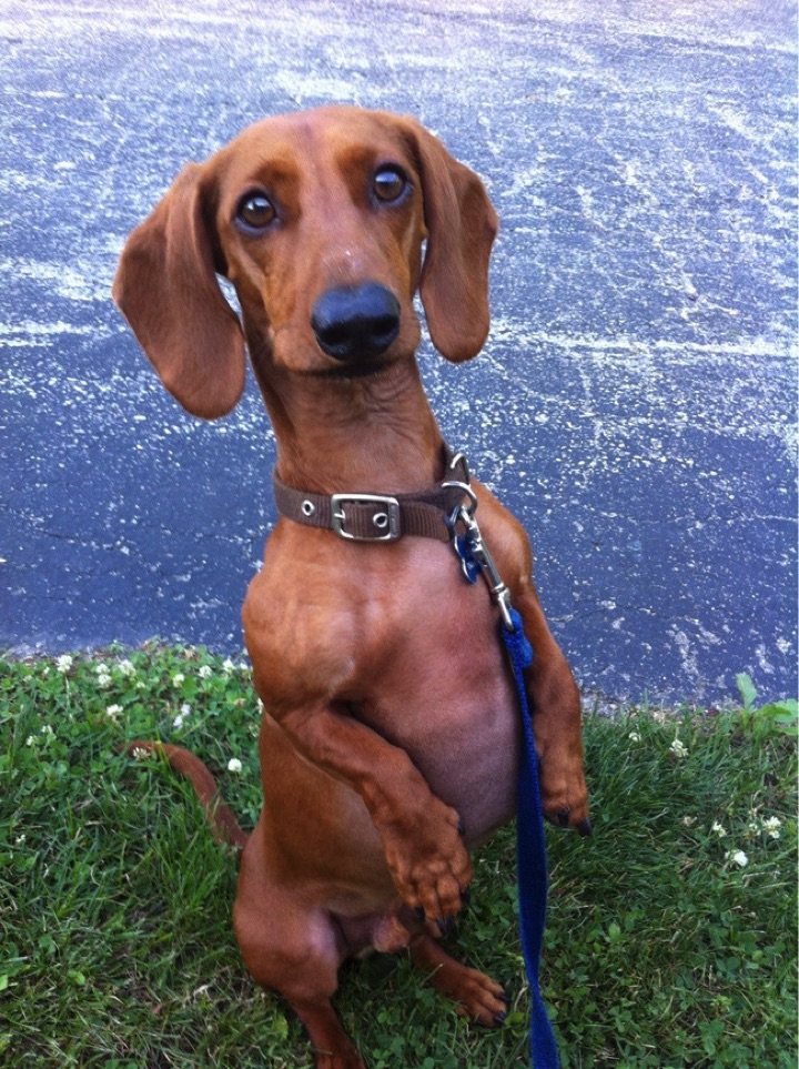 28) “How can you say NO to this face? Cute Dachshunds are for real!”