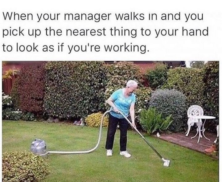 “When your manager walks in and you pick up the nearest thing to your hand to look as if you’re working.”