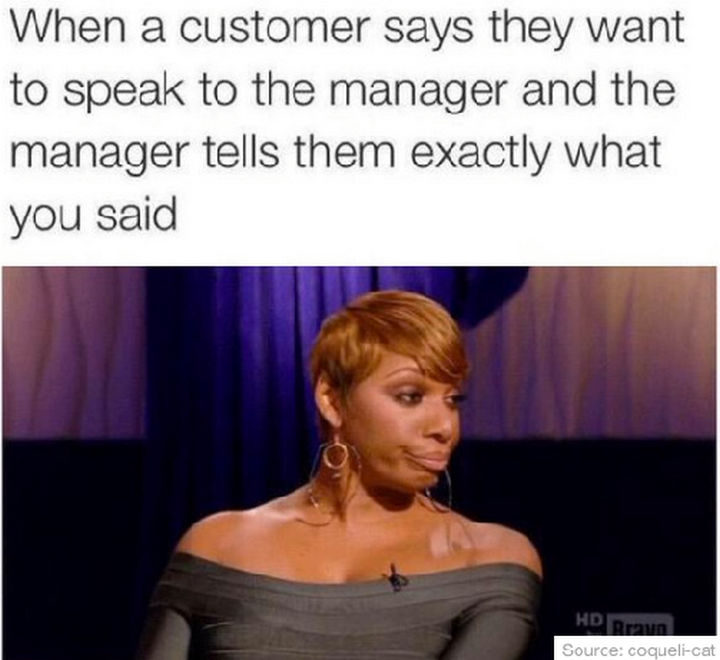 “When a customer says they want to speak to the manager and the manager tells them exactly what you said.”