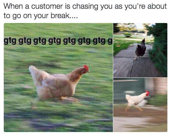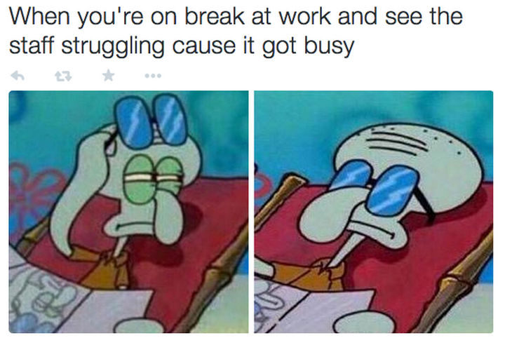 “When you’re on break at work and see the staff struggling cause it got busy.”