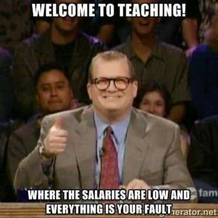 “Welcome to teaching! Where the salaries are low and everything is your fault.”