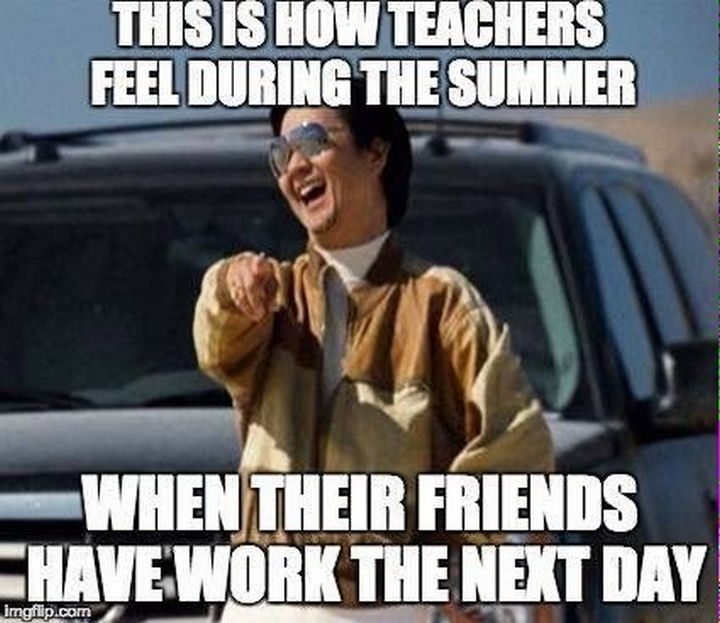“This is how teachers feel during the summer when their friends have work the next day.”