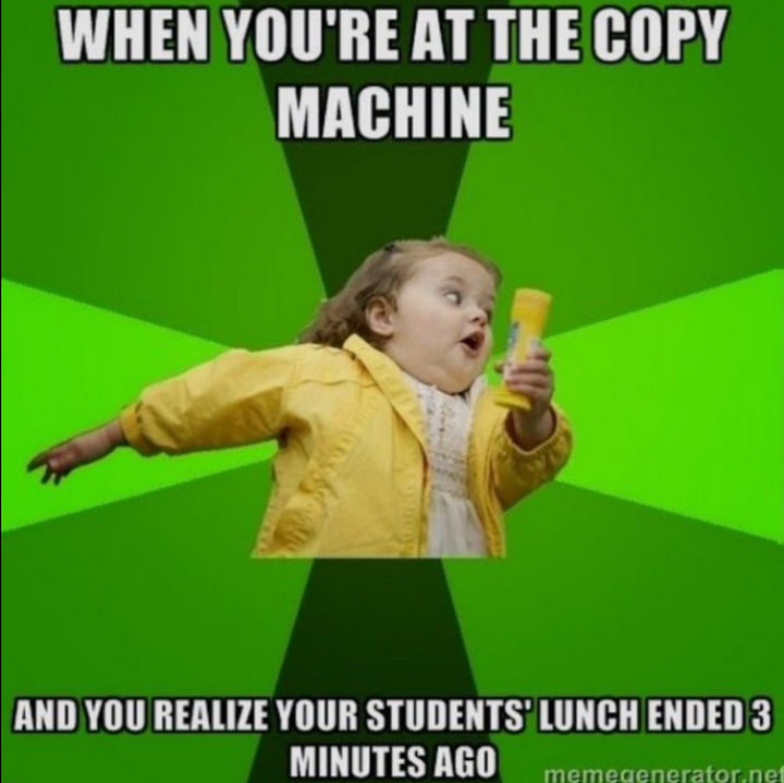 “When you’re at the copy machine and you realize your students’ lunch ended 3 minutes ago.”