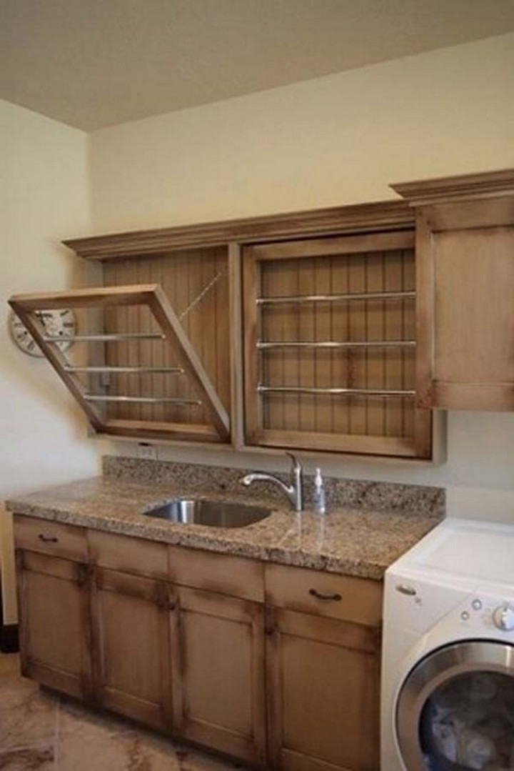 7) Home improvement ideas to save space in your laundry room by building collapsible drying racks.