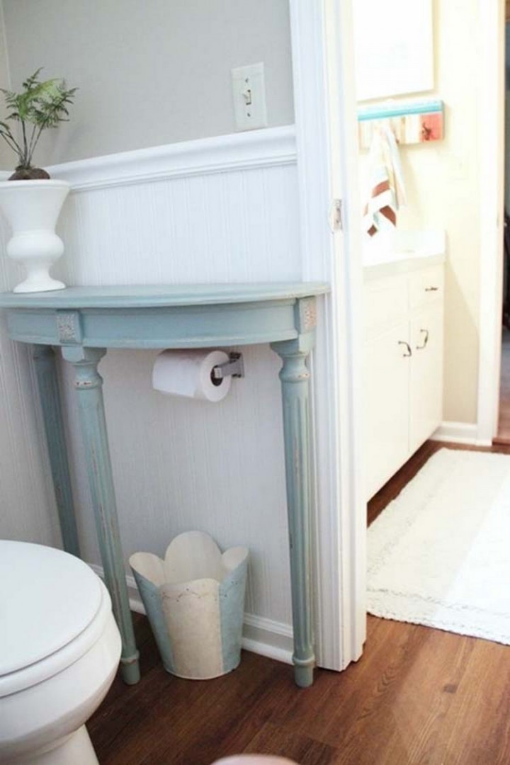 11) Place a half-table or corner table to maximize your space in the bathroom.