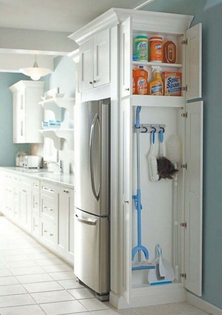 22) Home improvement ideas for the kitchen: Install a small closet in the kitchen to store cleaning supplies.