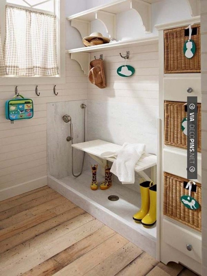 29) Home improvement ideas to install a simple dog bath in your entryway to easily clean mud off boots.