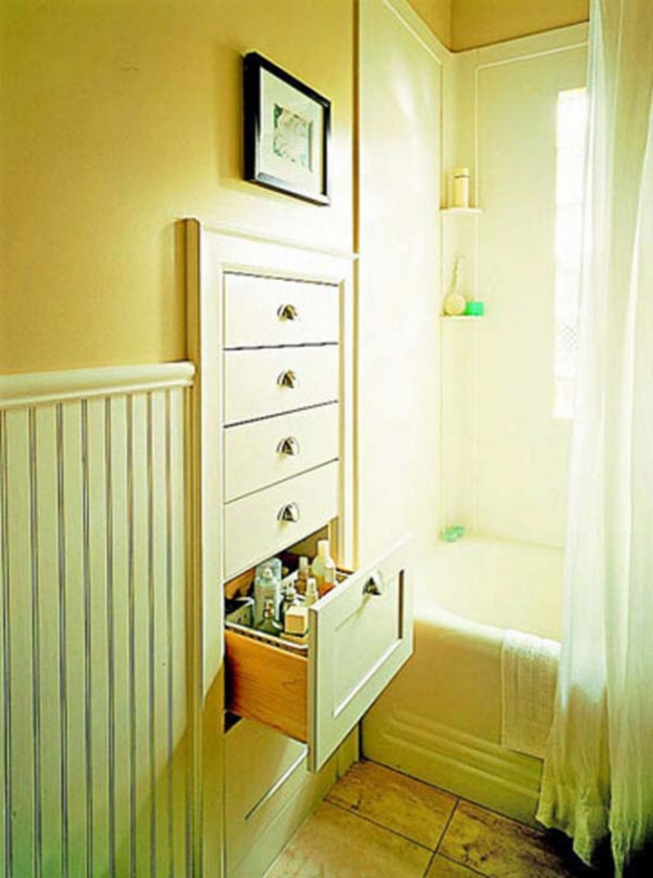 33) Maximize floor space and build wall drawers between the studs inside the wall.