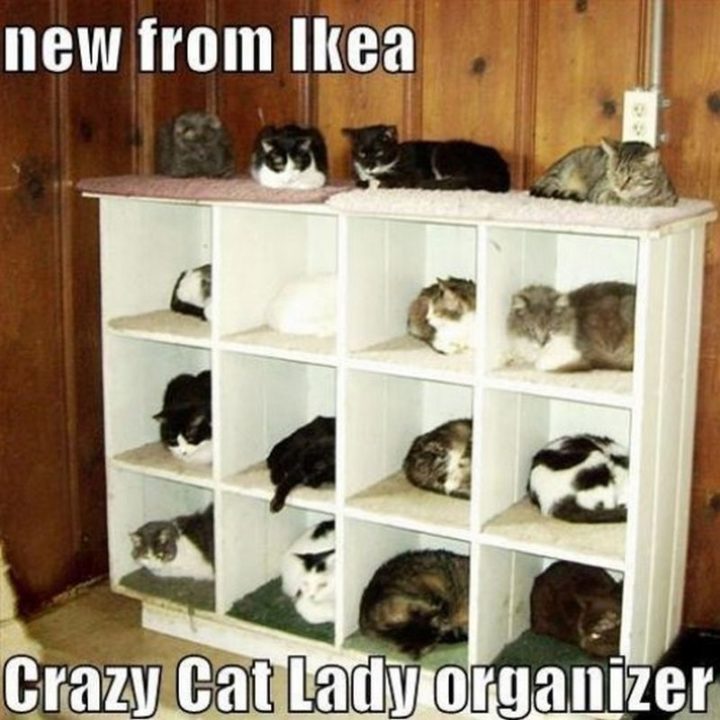 “New from IKEA. Crazy Cat Lady organizer.” Don’t forget this IKEA doll bed perfect for popular cats!