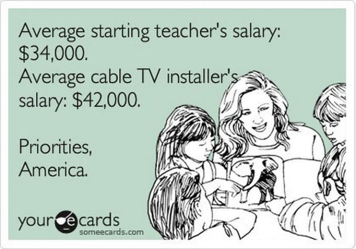 “Average starting teacher’s salary: $34,000. Average cable TV installer’s salary: $42,000. Priorities, America.”
