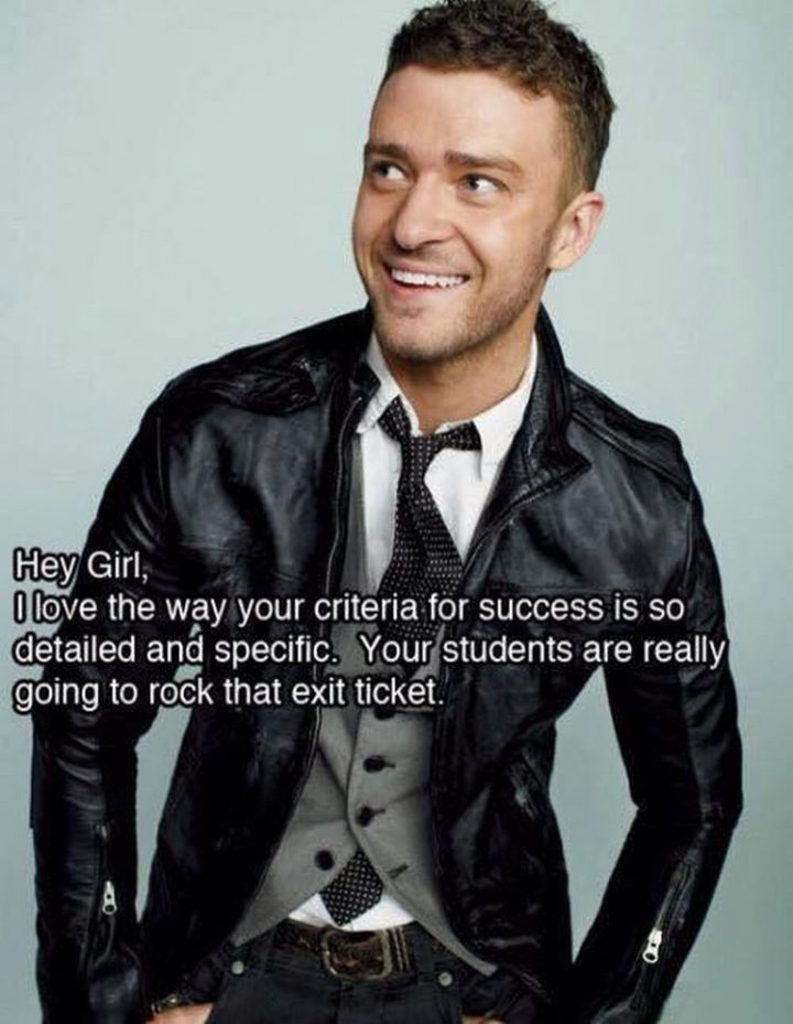 “Hey girl, I love the way your criteria for success are so detailed and specific. Your students are doing to rock that exit ticket.”