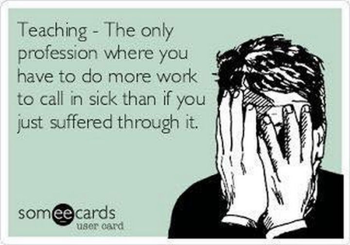 “Teaching – The only profession where you have to do more work to call in sick than if you just suffered through it.”