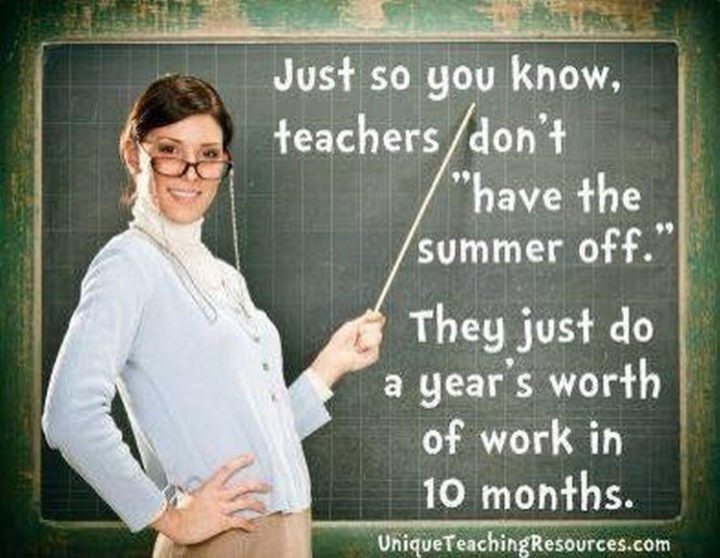 “Just so you know, teachers don’t “have the summer off.” They just do a year’s worth of work in 10 months.”