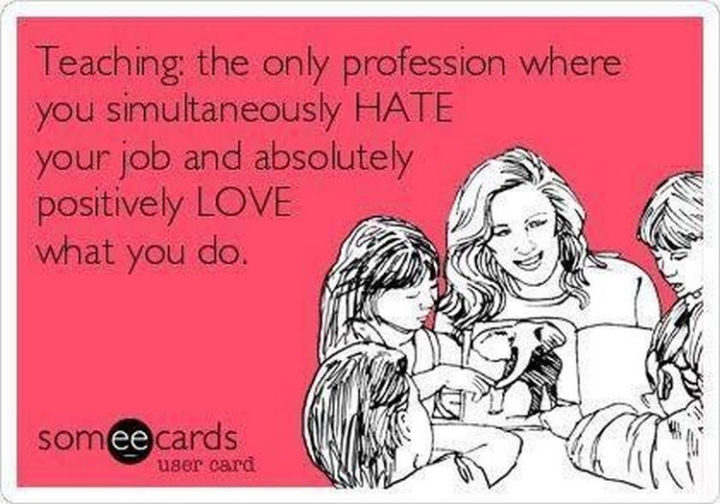 “Teaching: The only profession where you simultaneously hate your job and love what you do.”