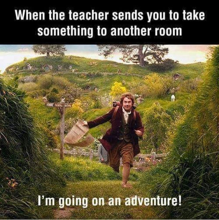 “When the teacher sends you to take something to another room. I’m going on an adventure!”