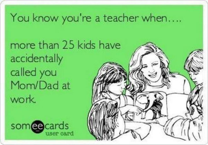 “You know you’re a teacher when…More than 25 kids have accidentally called you Mom/Dad at work.”