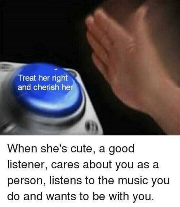 “When she’s cute, a good listener, cares about you as a person, listens to the music you do, and wants to be with you. Treat her right and cherish her.”