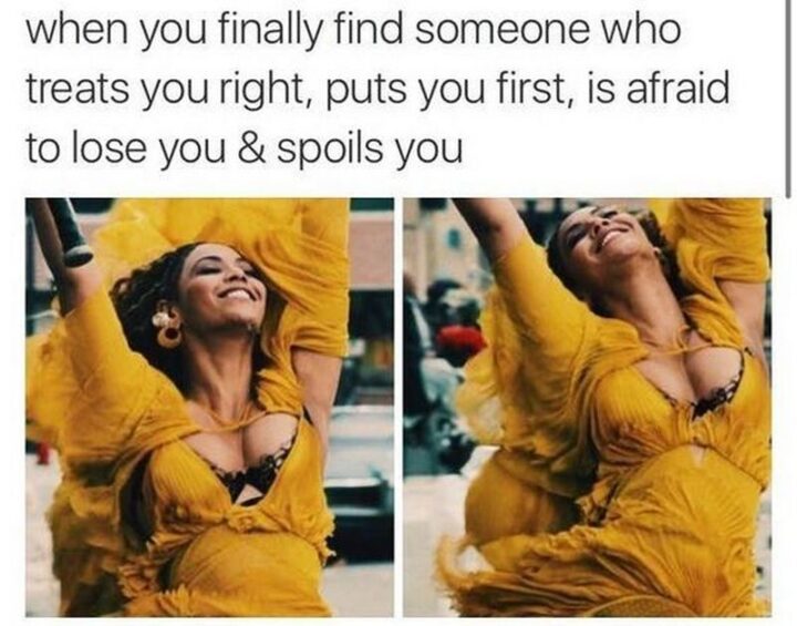 “When you finally find someone who treats you right, puts you first, is afraid to lose you, and spoils you.”