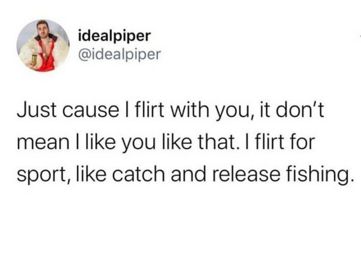 “Just cause I flirt with you, it doesn’t mean I like you like that. I flirt for sport, like catch and release fishing.”