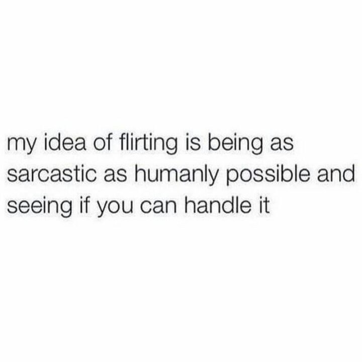 “My idea of flirting is being as sarcastic as humanly possible and seeing if you can handle it.”