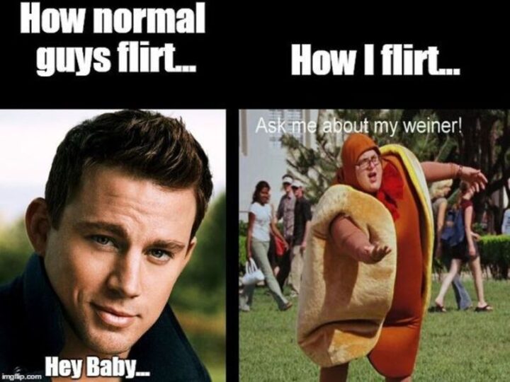 “How normal guys flirt…Hey baby…How I flirt…Ask me about my wiener!”